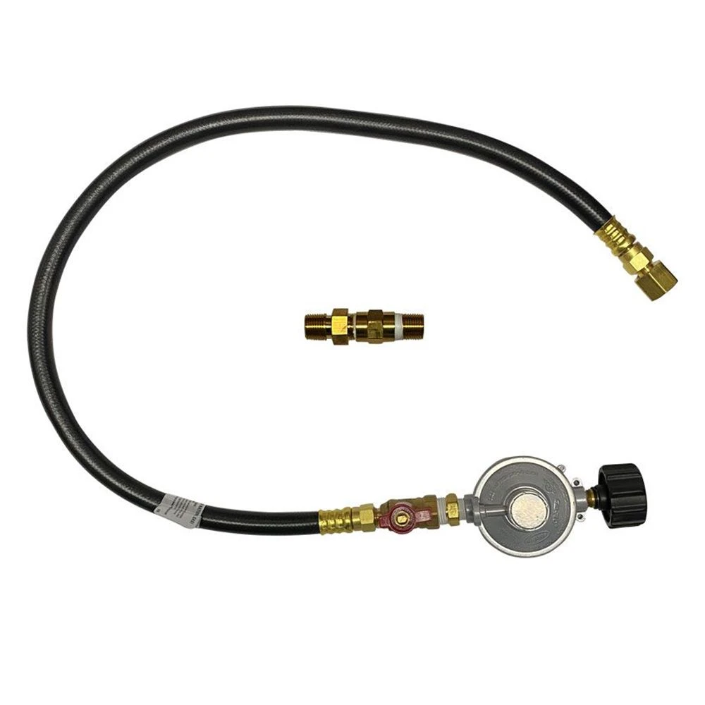 - Includes – Burner, pan, (1) stainless steel flex line with shut off valve