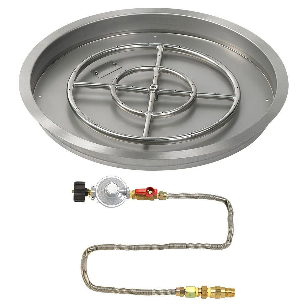 Gas fire pit pans are a crucial component to maintain the safety and quality of your fire pit. Burner pans help support your burner ring, separate the air mixer from fire pit media (for LP applications), and save money by reducing the amount of fire media you would otherwise need to complete your fire pit. Pans also help to minimize fuel settling below the pan, and help your fire pit drain properly, failure to do so may result in personal injury or explosion.