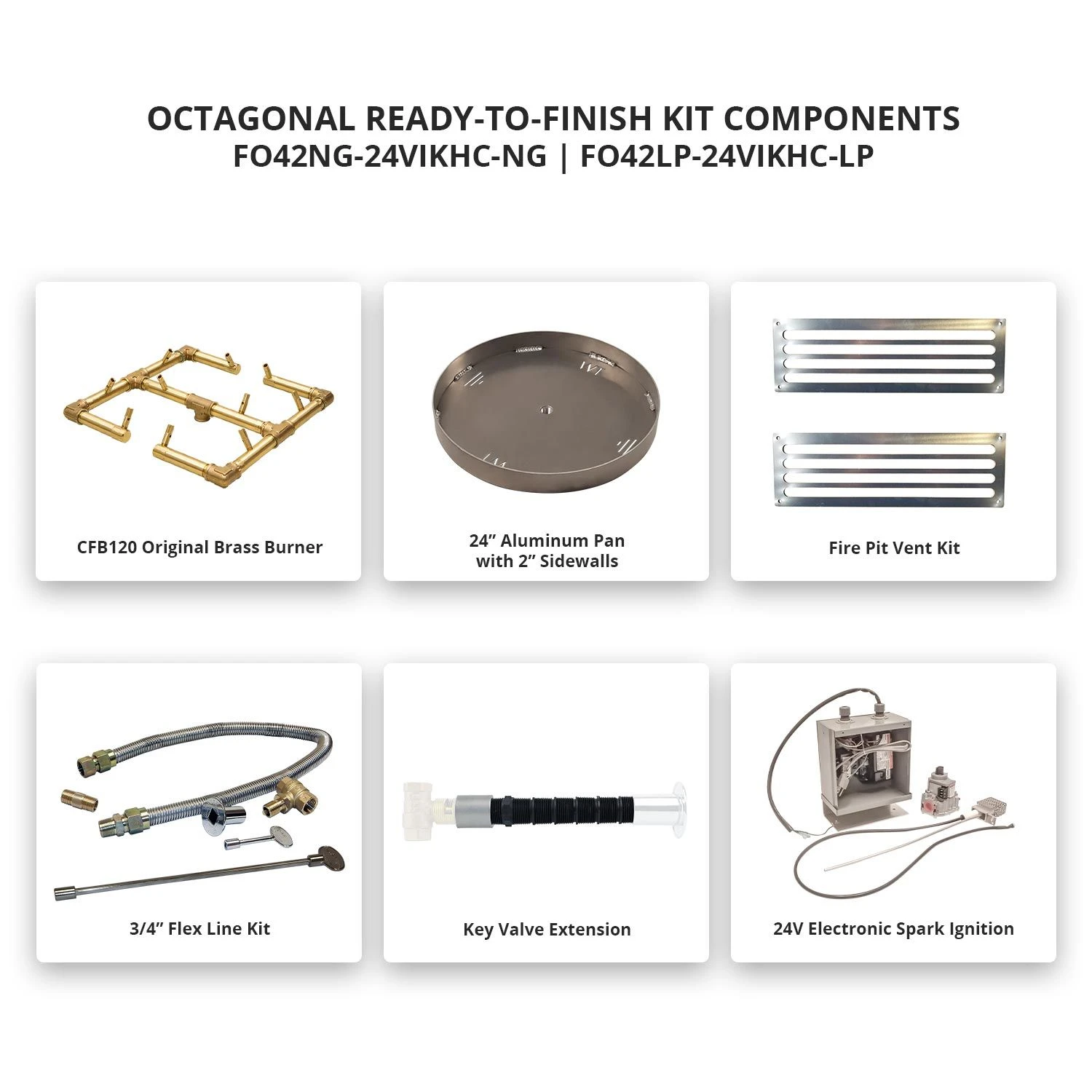 - Includes – Crossfire burner, burner pan, 36-inch flex line, valve, flange & key, and ignition system