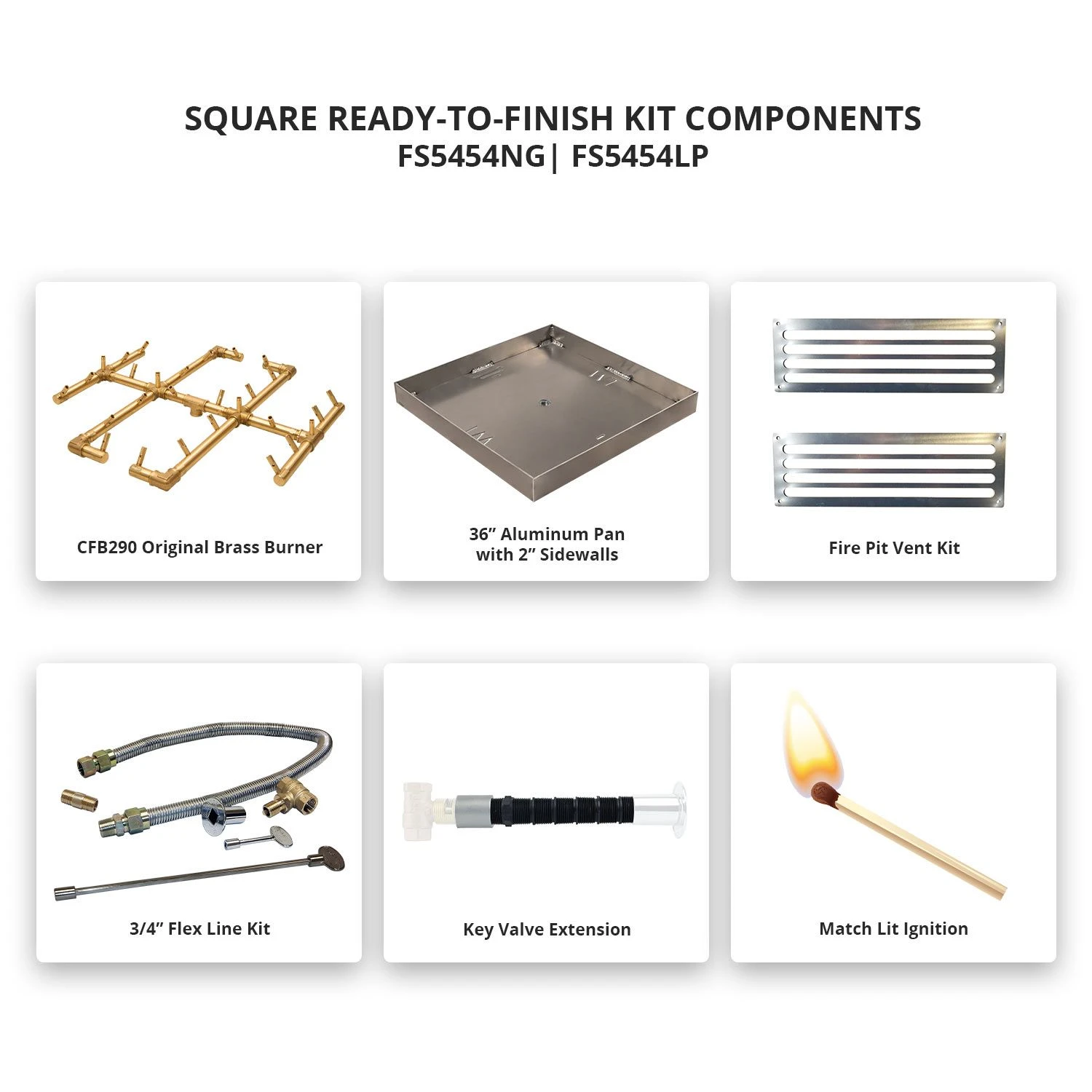 The included burner kit includes a 3/4-inch flex line that measures 36-inches long, a 1/4-turn ball valve with chrome plated decorative flange and 12-inch key, and a 36-inch square pan to combine the necessary components to install the burner system. Five ignition options are available in order to offer a wide variety of ignition types to start your fire pit.