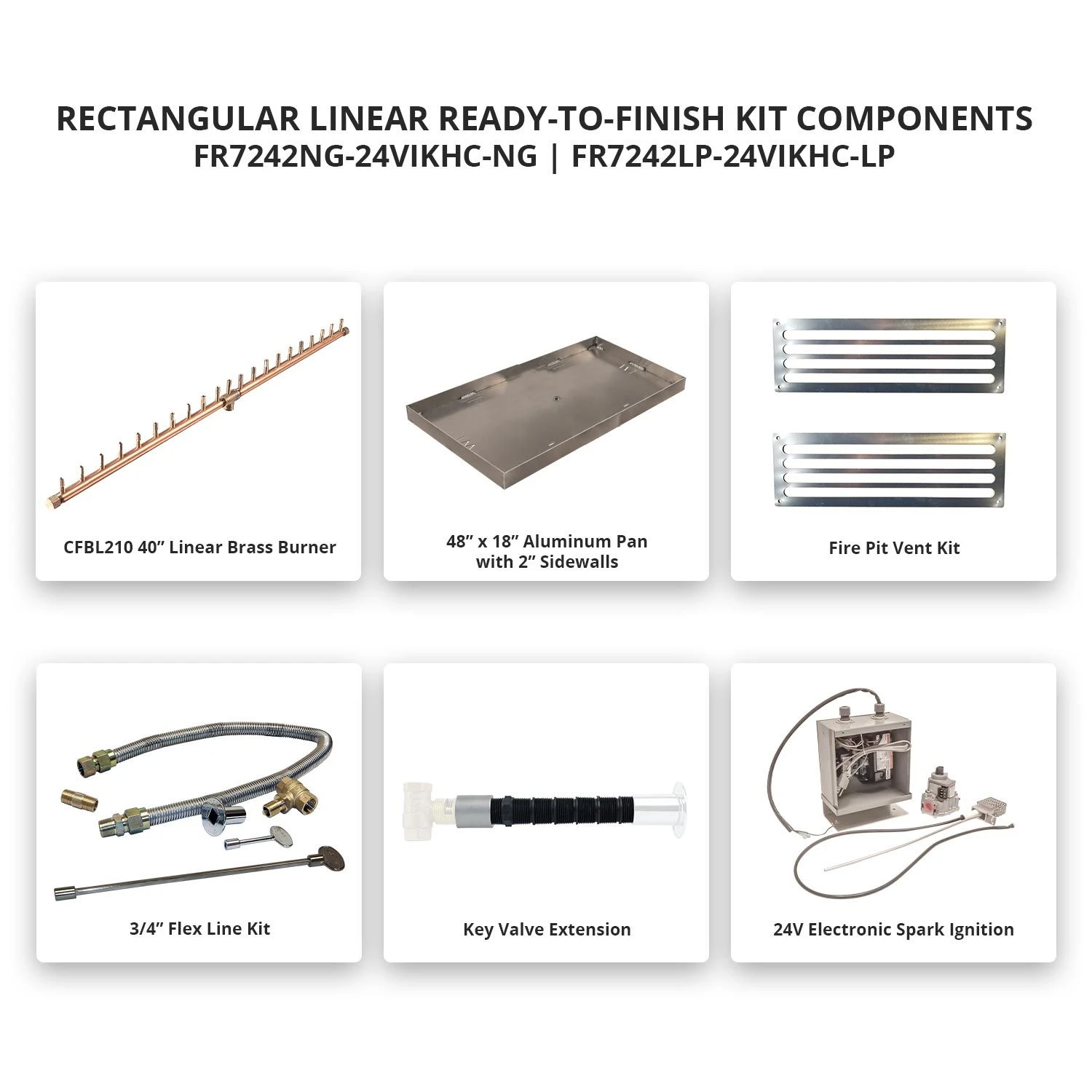 The included burner kit includes a 3/4-inch flex line that measures 36-inches long, a 1/4-turn ball valve with chrome plated decorative flange and 12-inch key, and a rectangle pan to combine the necessary components to install the burner system. Five ignition options are available in order to offer a wide variety of ignition types to start your fire pit.