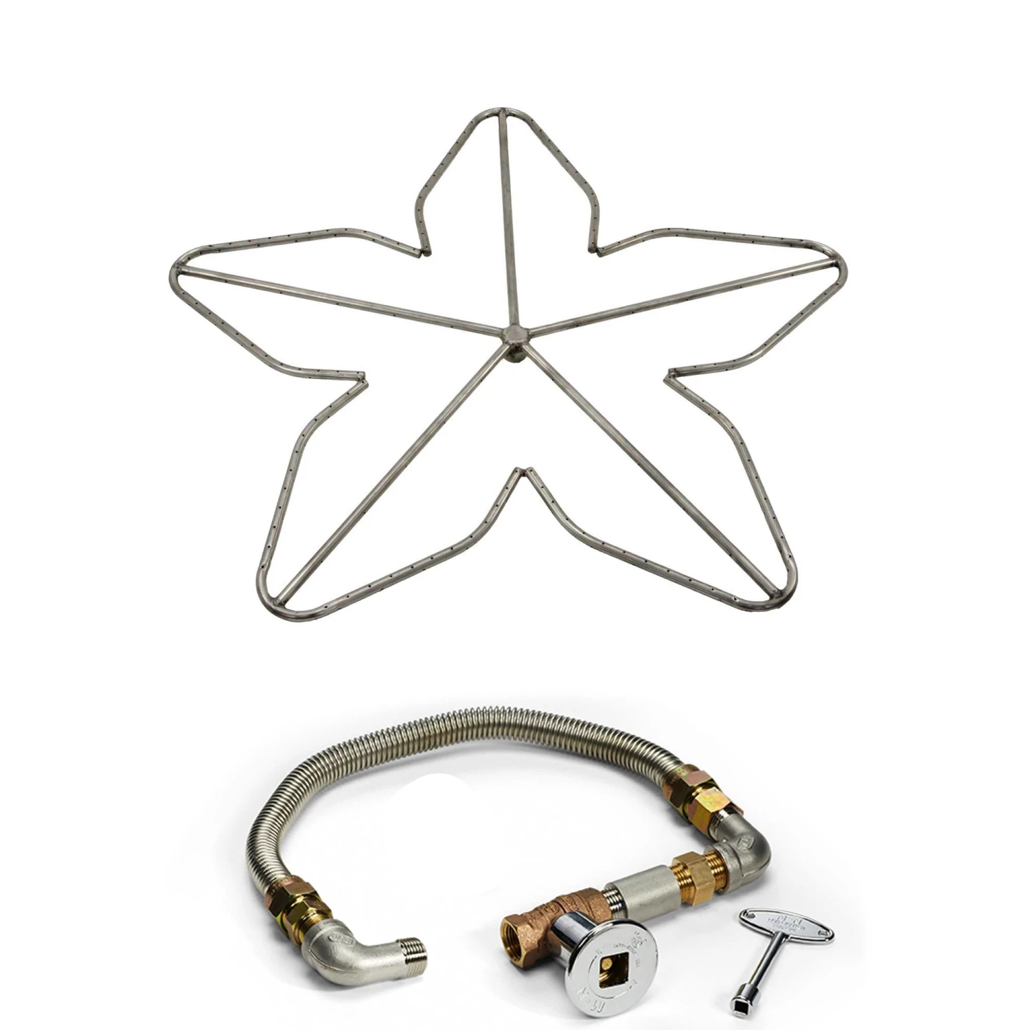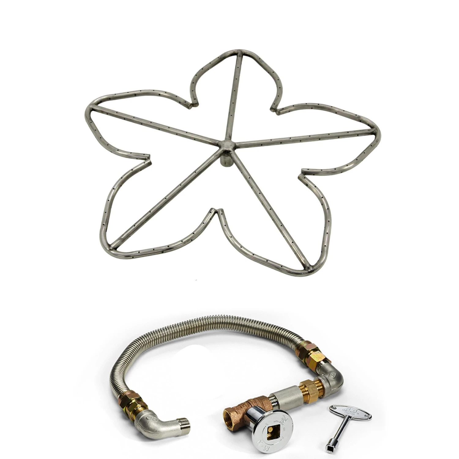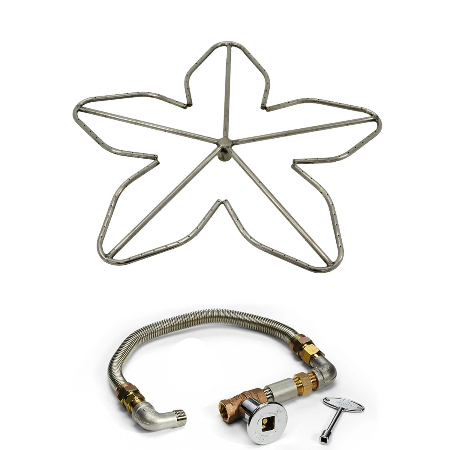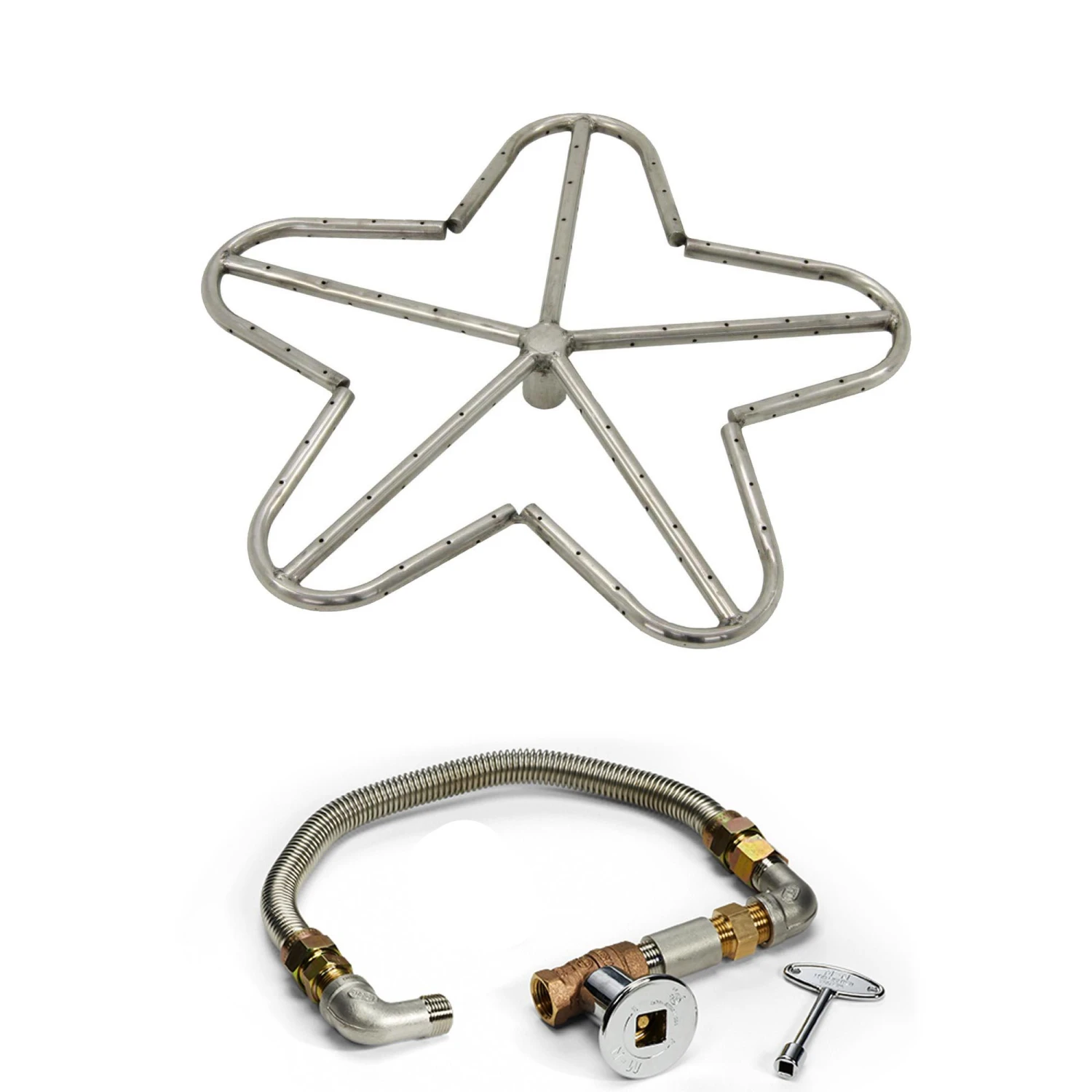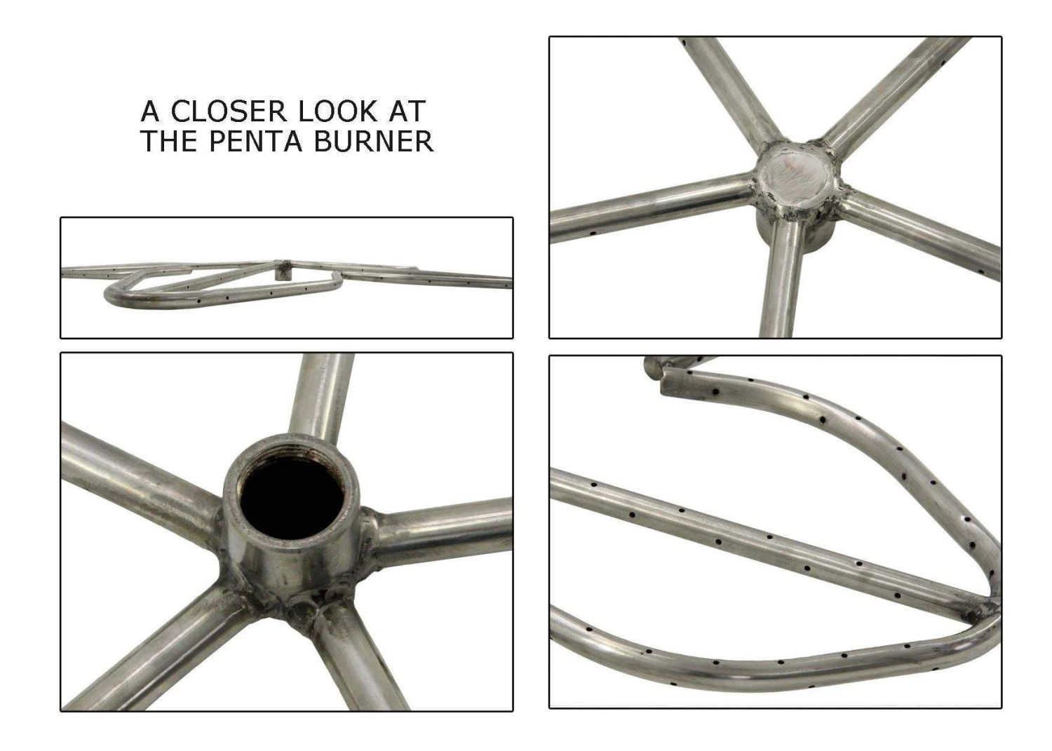 - Includes – Penta burner, flex line, fittings, ball valve, and decorative flange & key