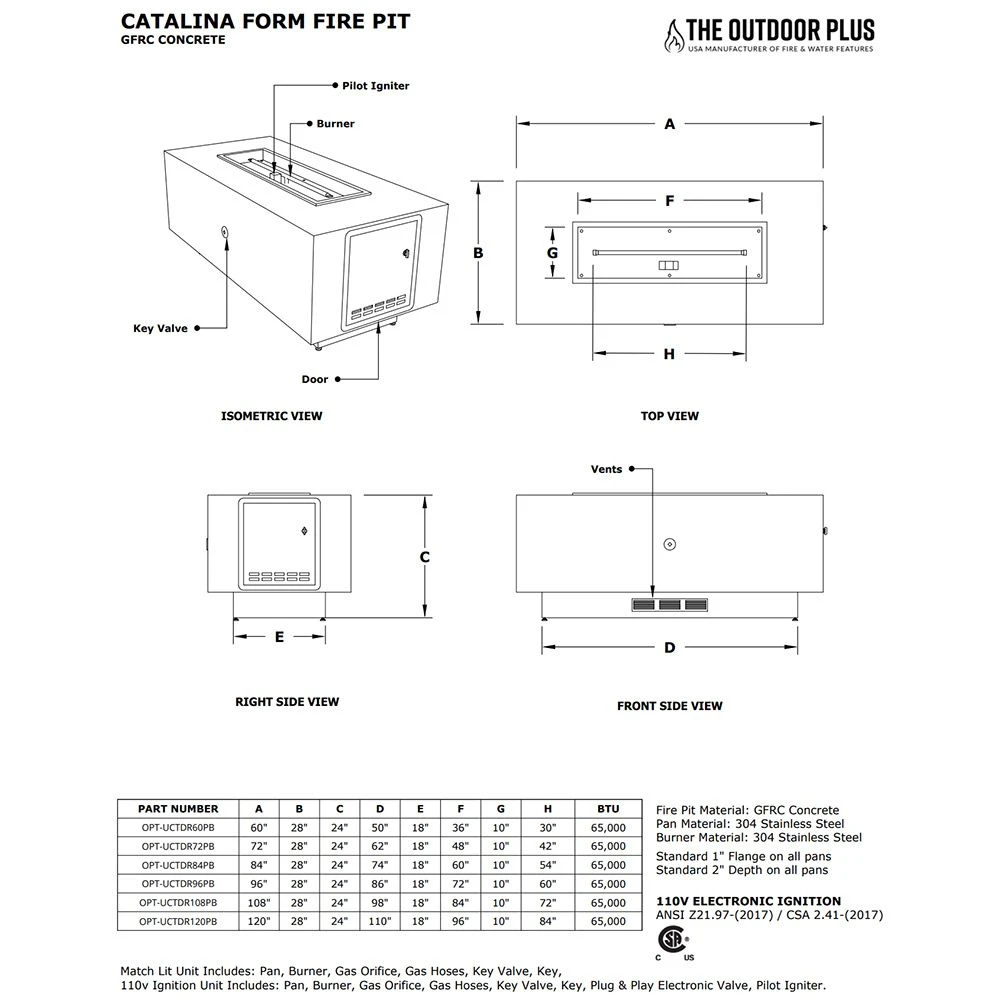 ManufacturerThe Outdoor PlusFuel TypeNatural Gas, PropaneMade in USAYesManufacturer Part NumberOPT-UCTDR72PB-ConfigOverall Length (Inches)72Overall Width (Inches)36ShapeRectangleBurner MaterialStainless SteelBurner Pan MaterialStainless Steel