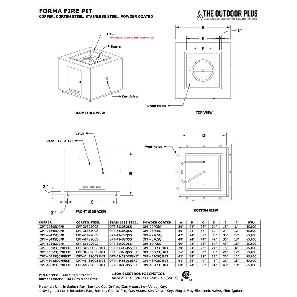 TOP Fires by The Outdoor Plus Forma 60×60-Inch Square Copper Gas Fire Pit